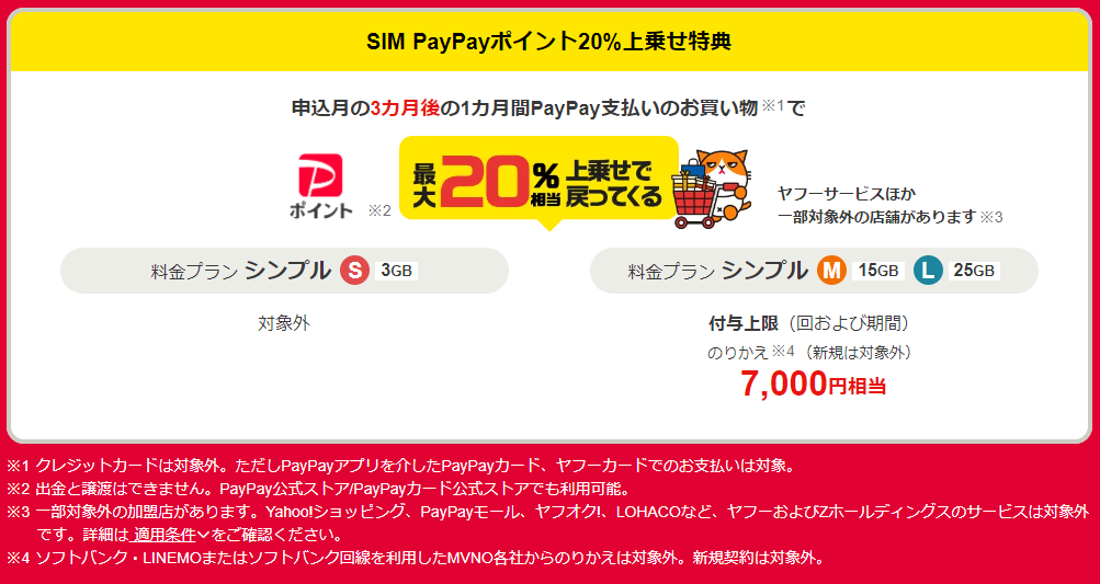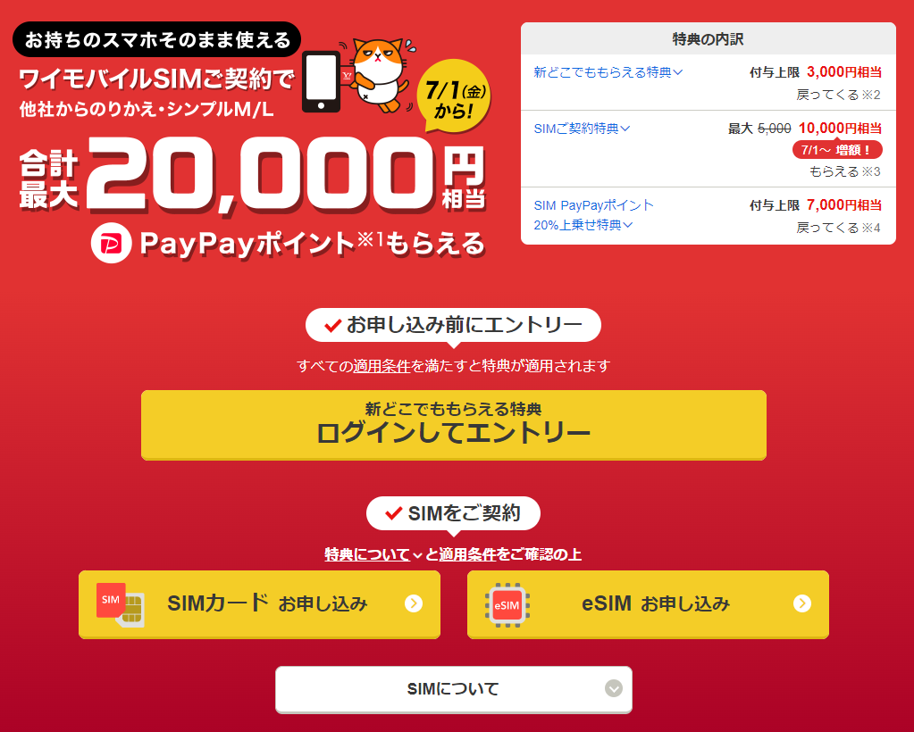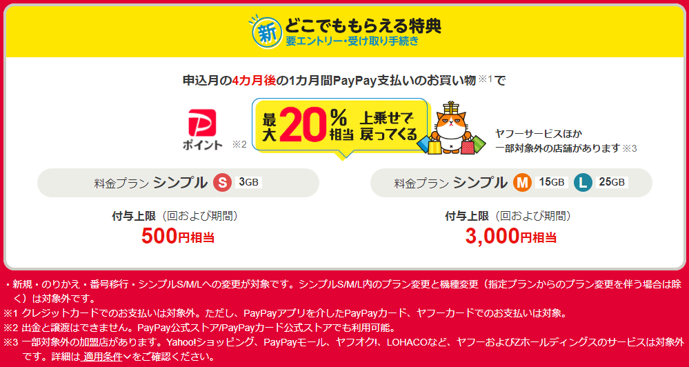 ヤフー店のSIMのみ特典|合計最大20,000円相当のPayPayポイント