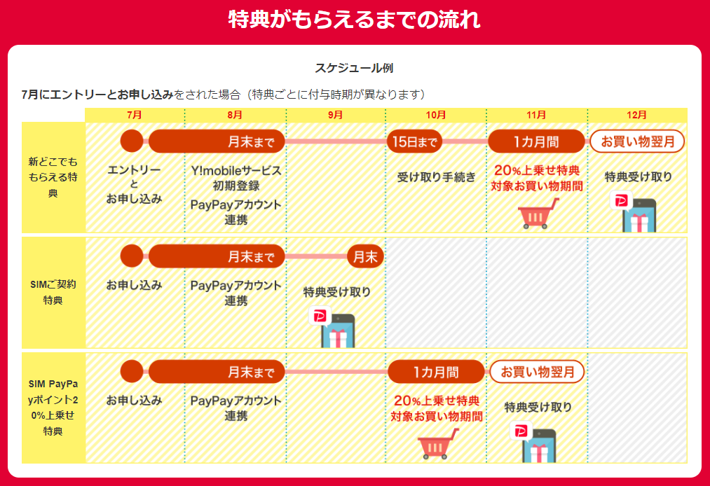以上の特典がもらえる条件をまとめたものがこのスケジュールとなります。