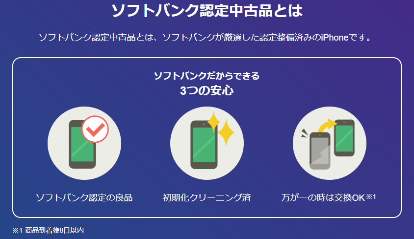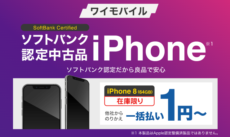 iPhoneユーザー向けにはソフトバンク認定中古品も1円~提供しています。
