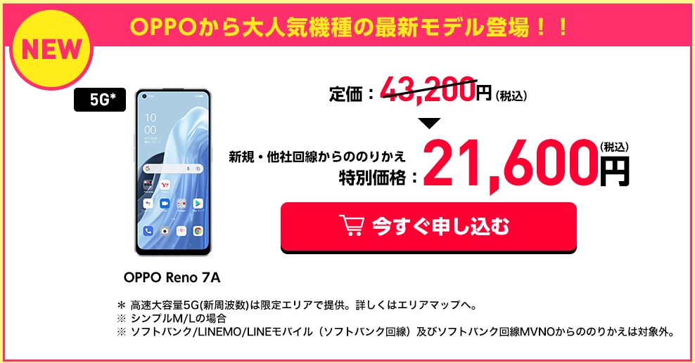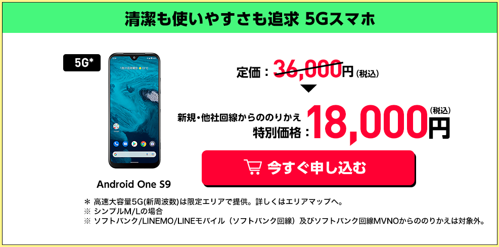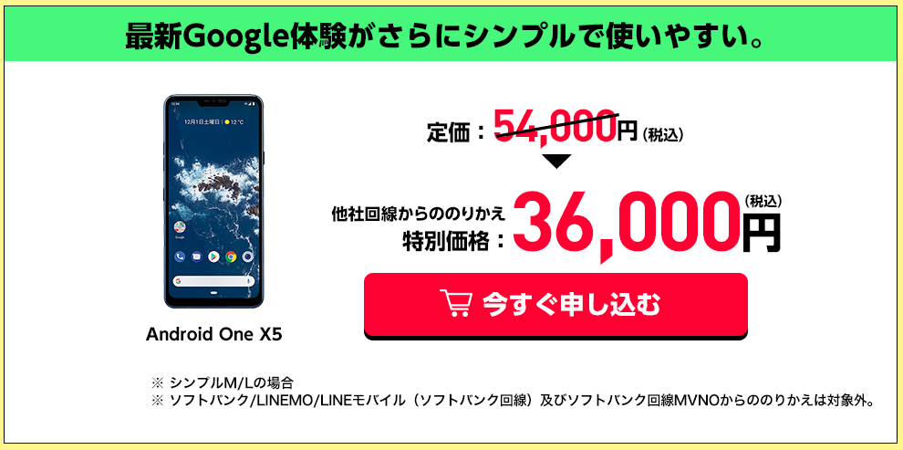 ワイモバイルヤフー店の特価スマホは他社からの乗り換え・シンプルM/Lプランに限定されますのでご注意ください。